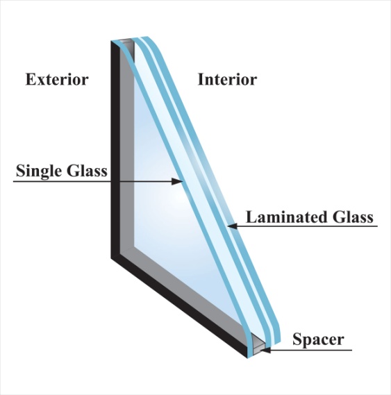 Kaca akustik terdiri dari dua atau lebih panel kaca, direkatkan bersama-sama dengan akustik interlayer atau membran akustik. Interlayer ini bertindak sebagai peredam kebisingan, mencegah suara getaran dan melemahkan suara ketika melewati kaca.