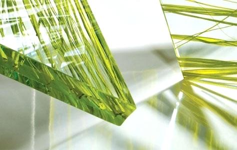 di seluruh permukaan kaca dan tepi yang rapih dapat dicapai untuk aplikasi tanpa bingkai. Bila dilihat dari beberapa foto di halaman ini, Anda dapat perhatikan bahan-bahan organik berwarna hijau seakan-akan membeku dalam sebuah cetakan kaca.