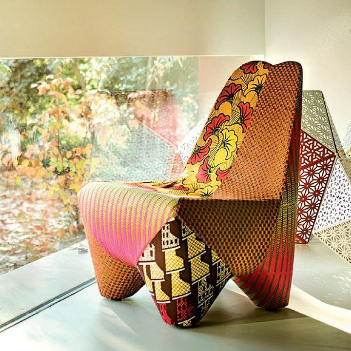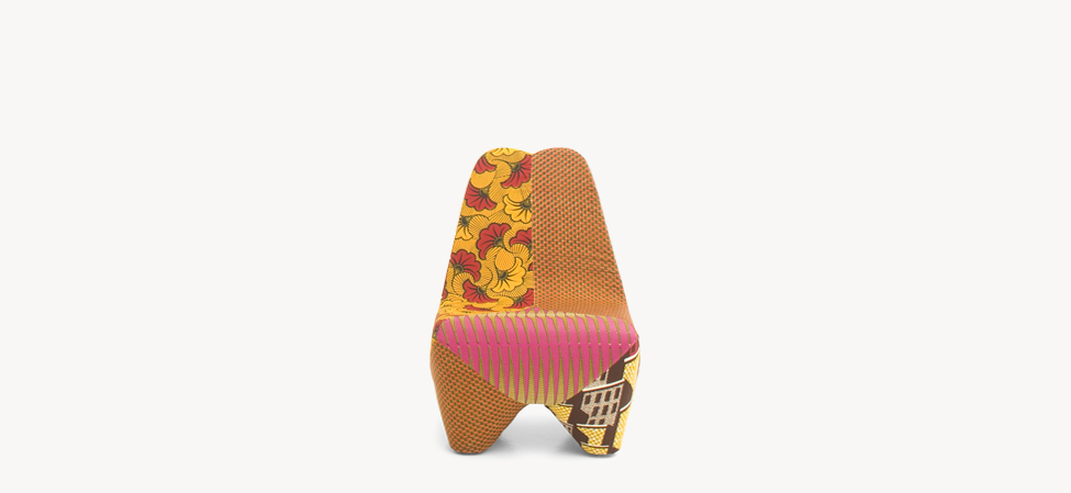 Terinspirasi oleh seni Afrika, bentuk kursi ini seperti ukiran kayu Afrika dan jok kursi ini dirancang seperti tambal kain sulam Senegal dengan warna cerah khas Afrika.
