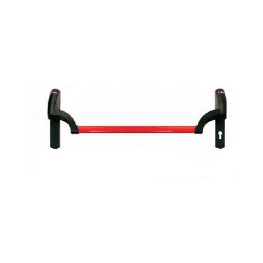 Panic bar ISEO PALMO 949000050379 yang dilengkapi dengan lubang kunci pada sisi kanan bawah handle dapat dipasangkan pada pintu besi sebagai handle pintu darurat. Panic bar ini dirancang dengan material yang tahan api dan panas pada tingkat tertentu.