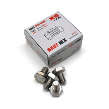 Baut HEX M10 Stainless Steel SS304 / Baut Segienam Hexagonal, menggunakan stainless steel 304 kualitas tinggi. Menjadikan penikat yang tahan korosi untuk umur pakai yang lebih lama.